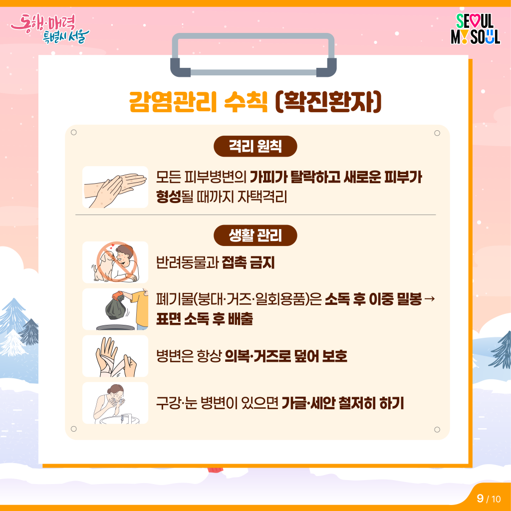 - 외출 필요 시에는 병변 가리고 마스크 착용하기