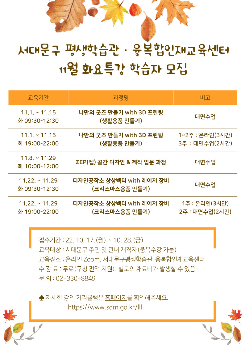 ¼´ë¹®±¸Æò»ýÇнÀ°ü 11¿ù È¿äÆ¯° ÇнÀÀÚ ¸ðÁý Á¶ÀºÁ¤ 2051 2022³â 10¿ù 13ÀÏ (¸ñ) ¿ÀÈÄ 10:57:43 https://www.sdm.go.kr/lll/user/lectureinfo/lectureInfoList.do?pageLS=10&itemCd1=04&itemCd3=&itemCd8=&itemCd4=&itemCd7=&startValue=&endValue=&pageST=lec_nm&pageSV=