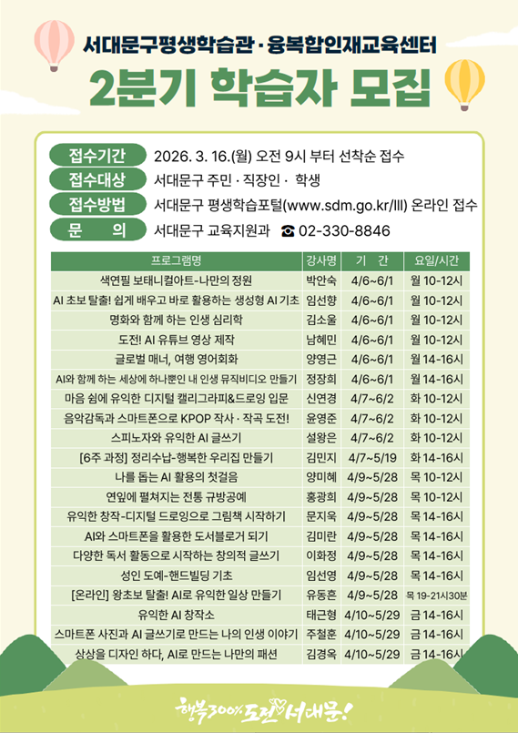 ½Åû¹æ¹ý : ¼´ë¹®±¸ Æò»ýÇнÀÆ÷ÅÐ ¿Â¶óÀÎ Á¢¼ö(https://www.sdm.go.kr/lll/)