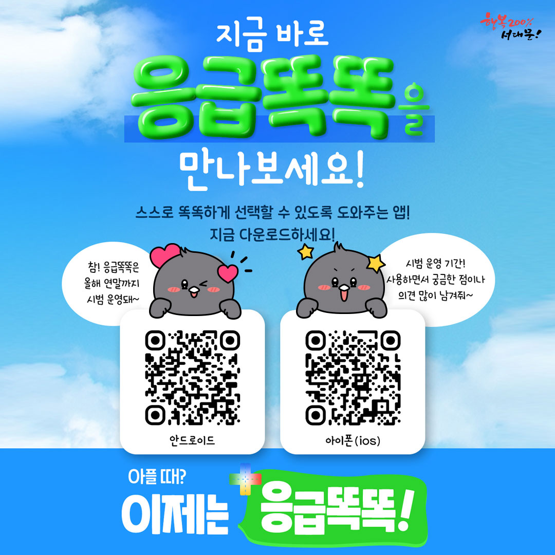 *링크 연결이 안 되신다면, 구글플레이앱 또는 앱스토어에서 '응급똑똑'을 검색하여 주시기 바랍니다.