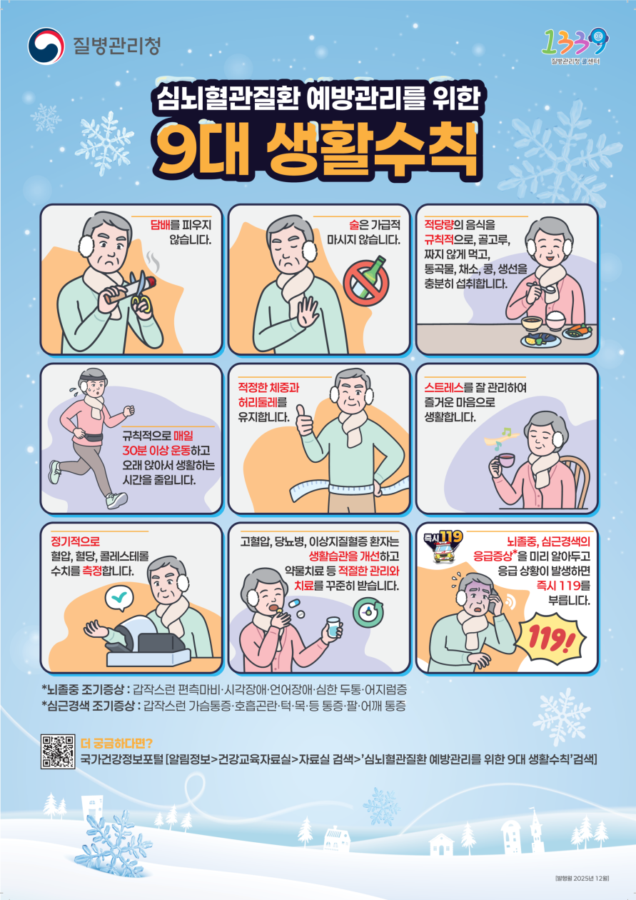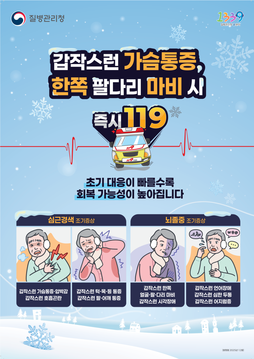 제목 겨울철 심근경색·뇌졸중 조기증상 및 9대 생활수칙 안내
