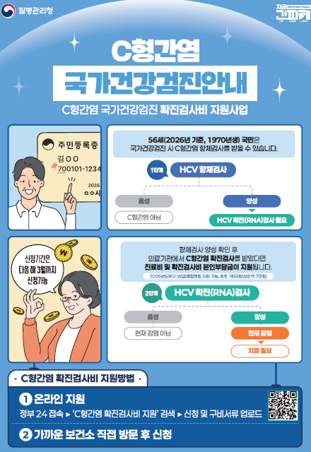 ※2026년 기준, 56세(1970년생) 국민은 국가건강검진 시 C형간염 항체검사를 받을 수 있습니다.