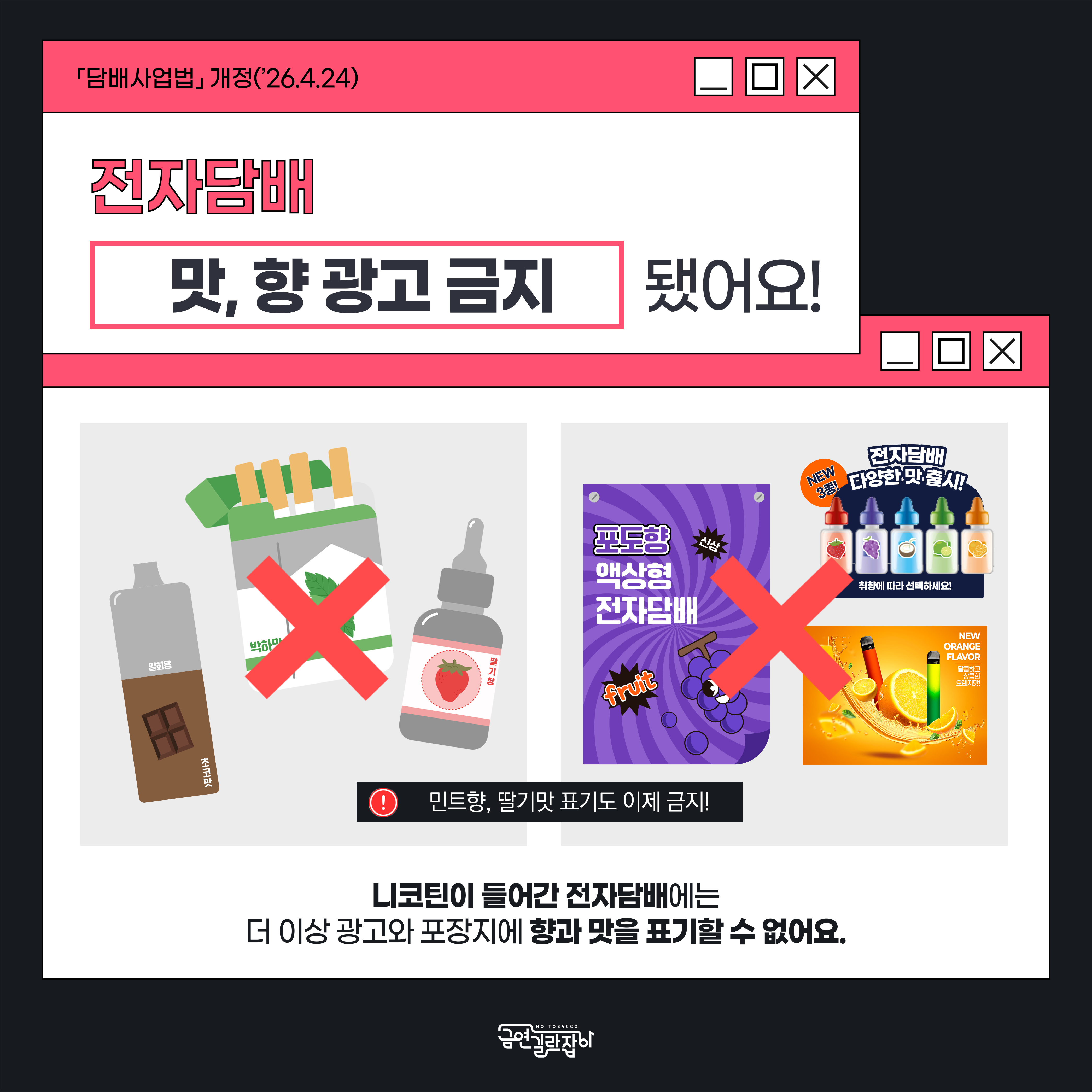 | 제목 | 니코틴이 있다면 모두 담배입니다(「담배사업법」 개정 시행일 26.04.24.) | ||