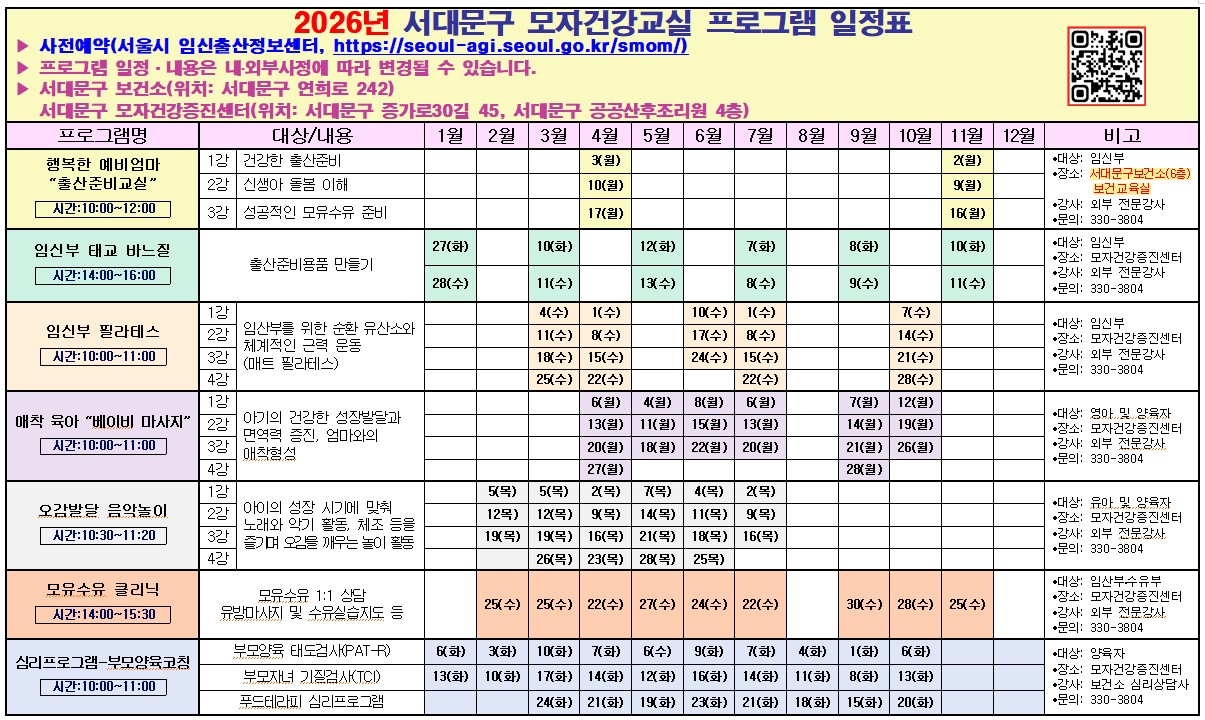 모자건강 프로그램 운영(일정 및 강의 내용은 변경될 수 있습니다)