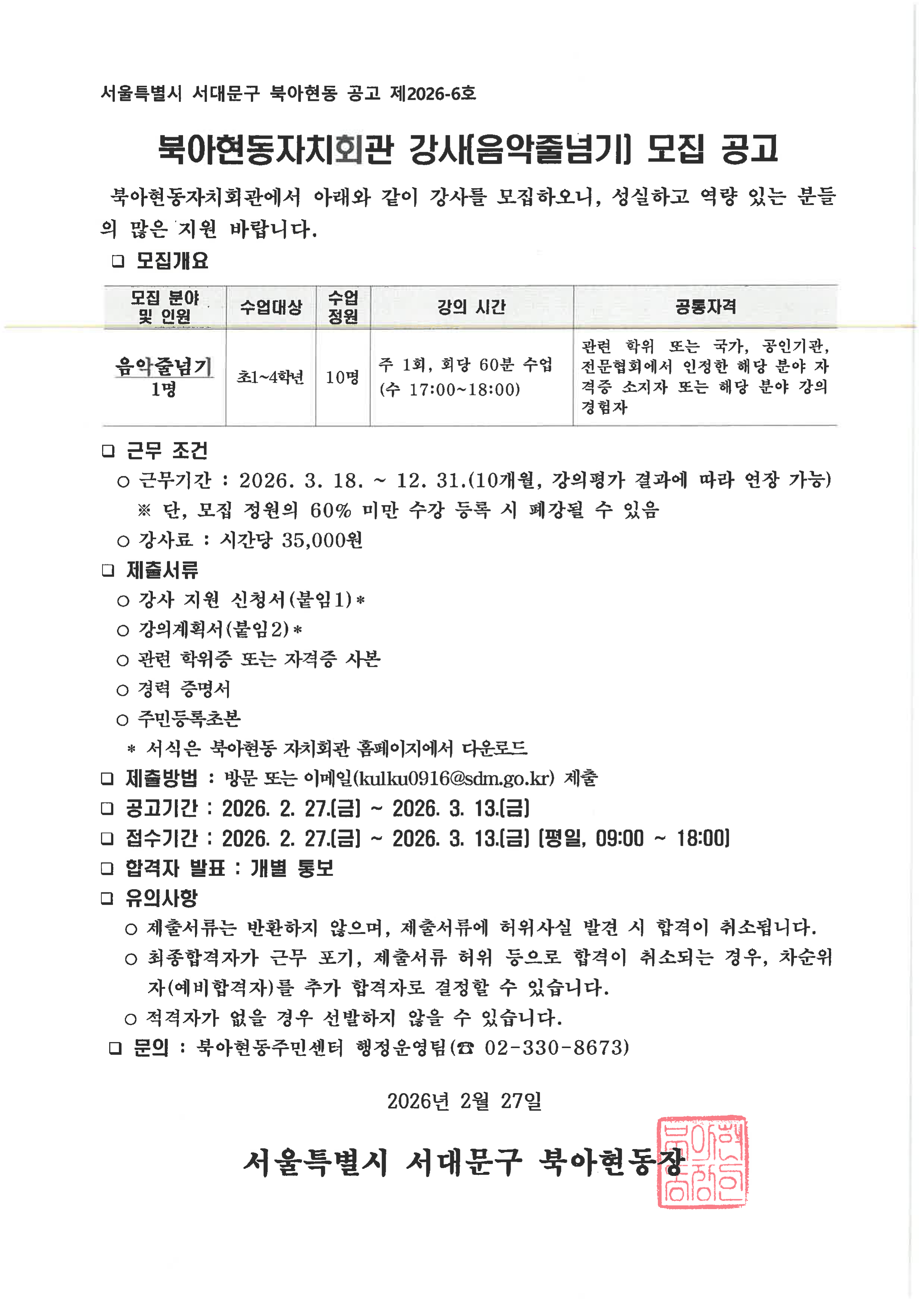 ºÏ¾ÆÇöµ¿ÀÚġȸ°ü °»ç(À½¾ÇÁٳѱâ)¸ðÁý °ø°í¹® ¹× Á¦Ãâ¼½Ä.hwpx