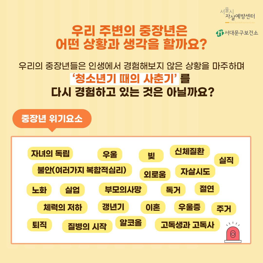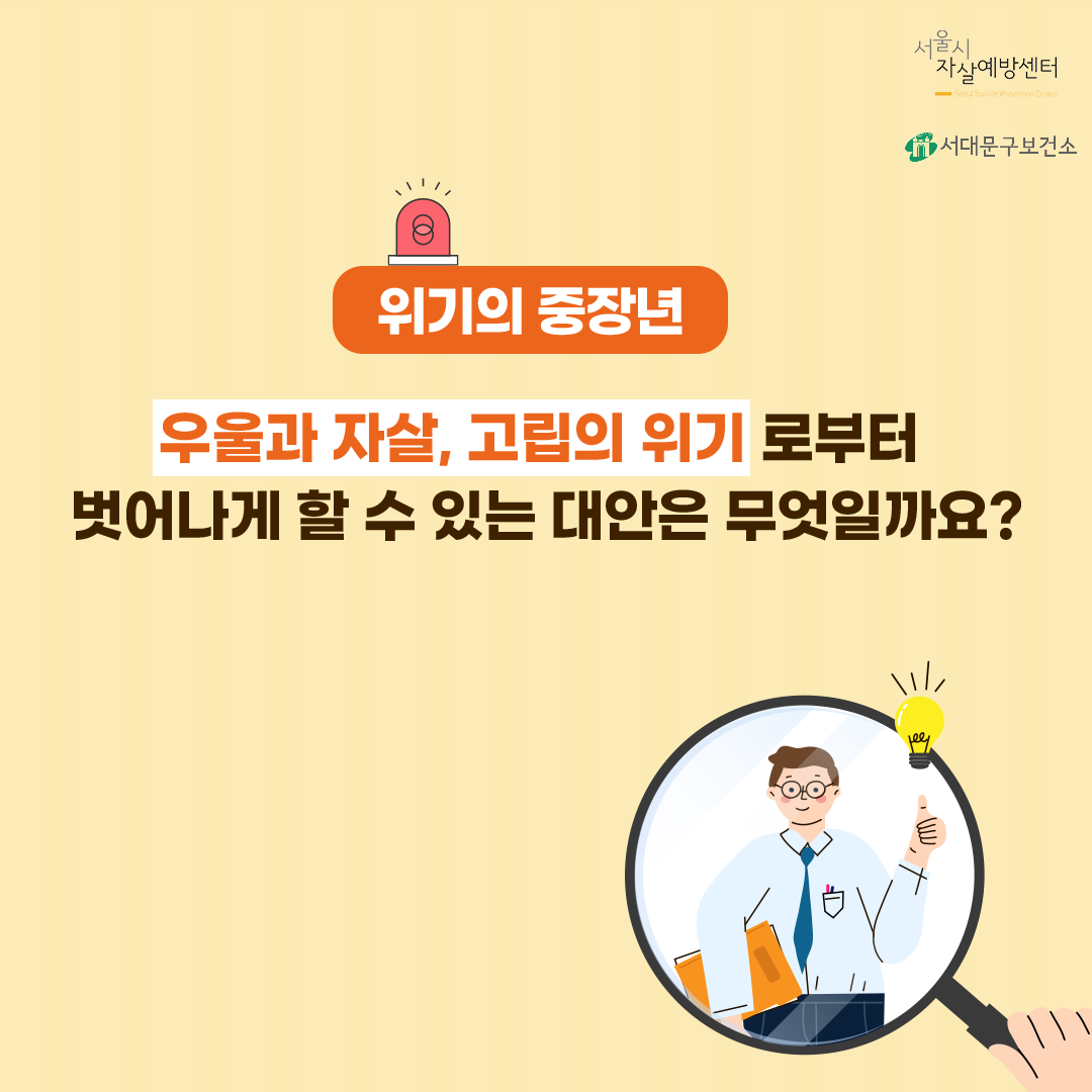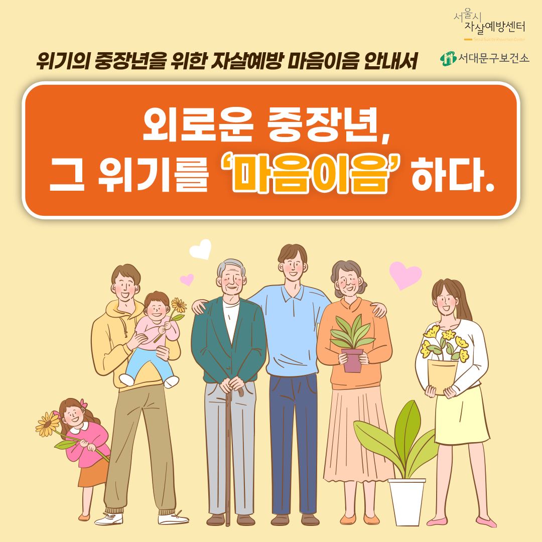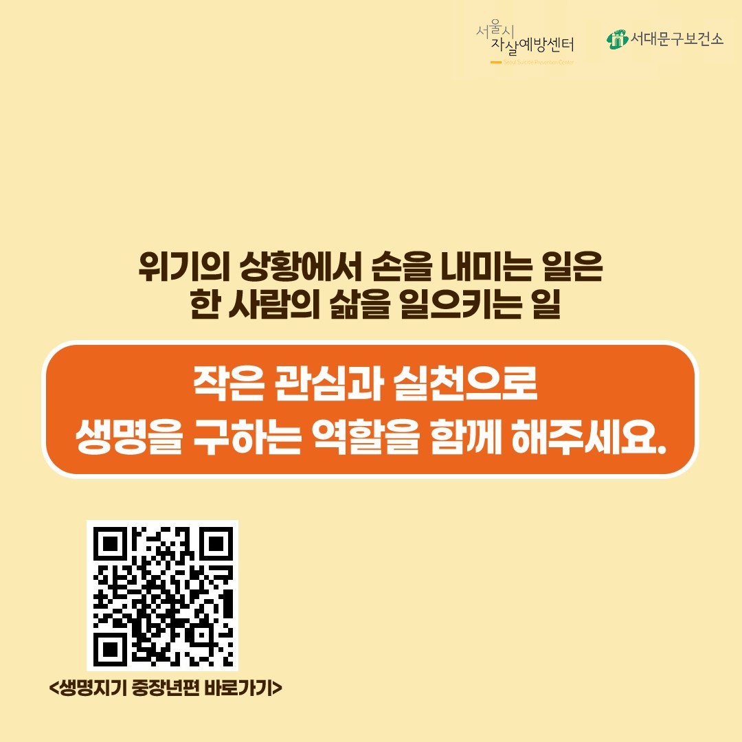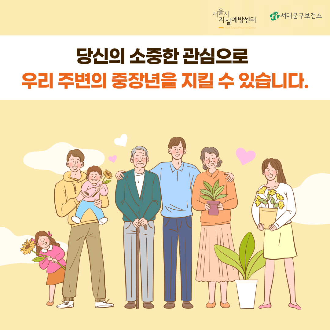 당신의 소중한 관심으로 우리 주변의 중장년을 지킬 수 있습니다.