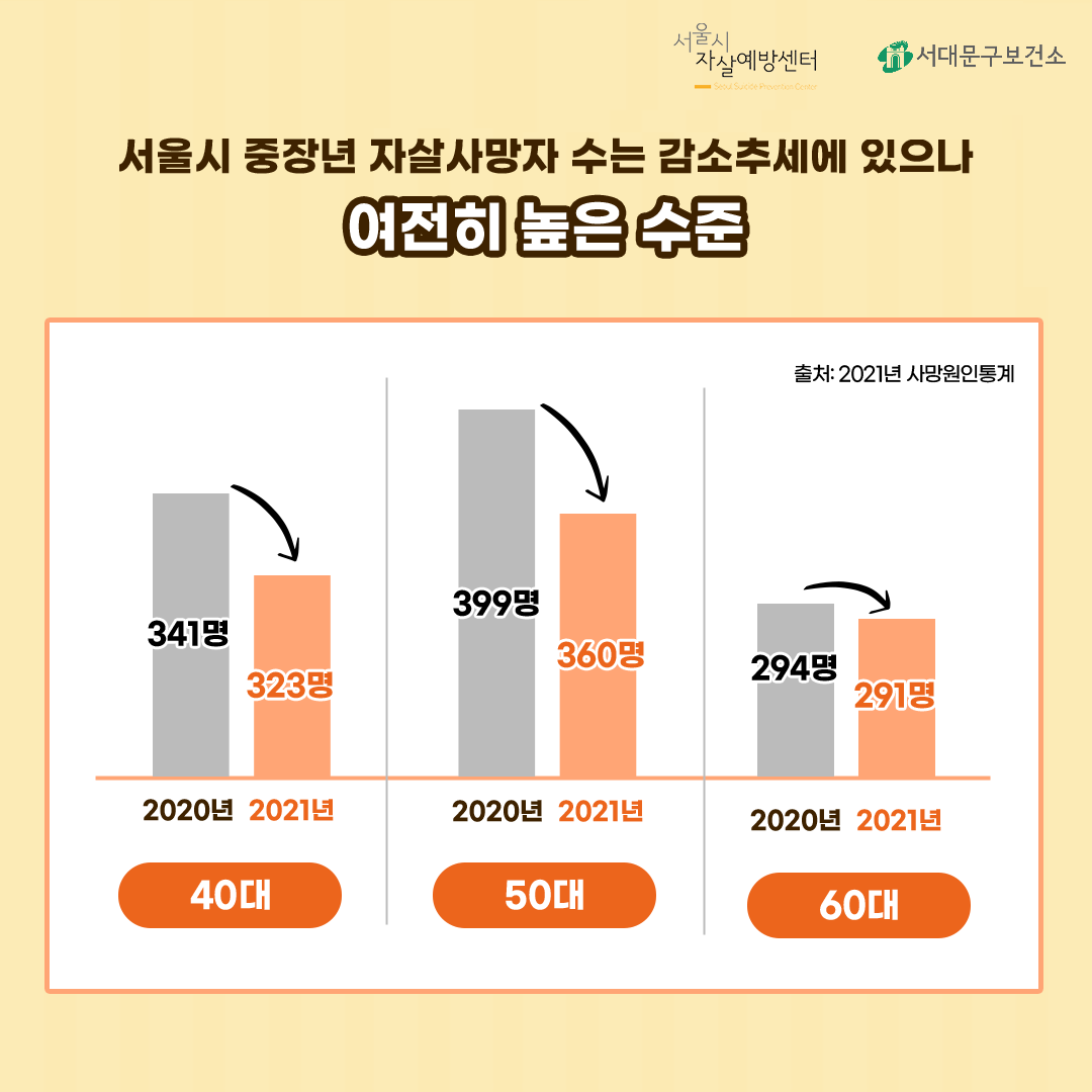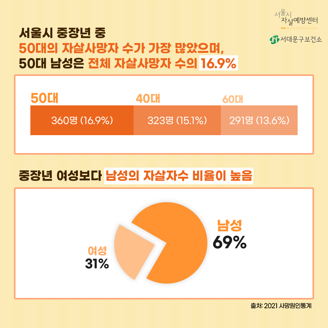 서울시 중장년 중 50대 자살사망자 수가 가장 많았으며,