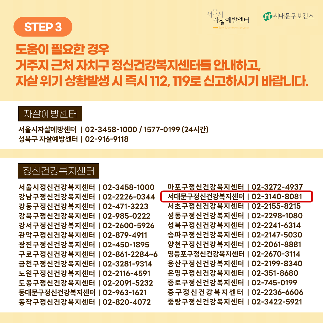 (서대문구 정신건강복지센터 ☎02-3140-8081)
