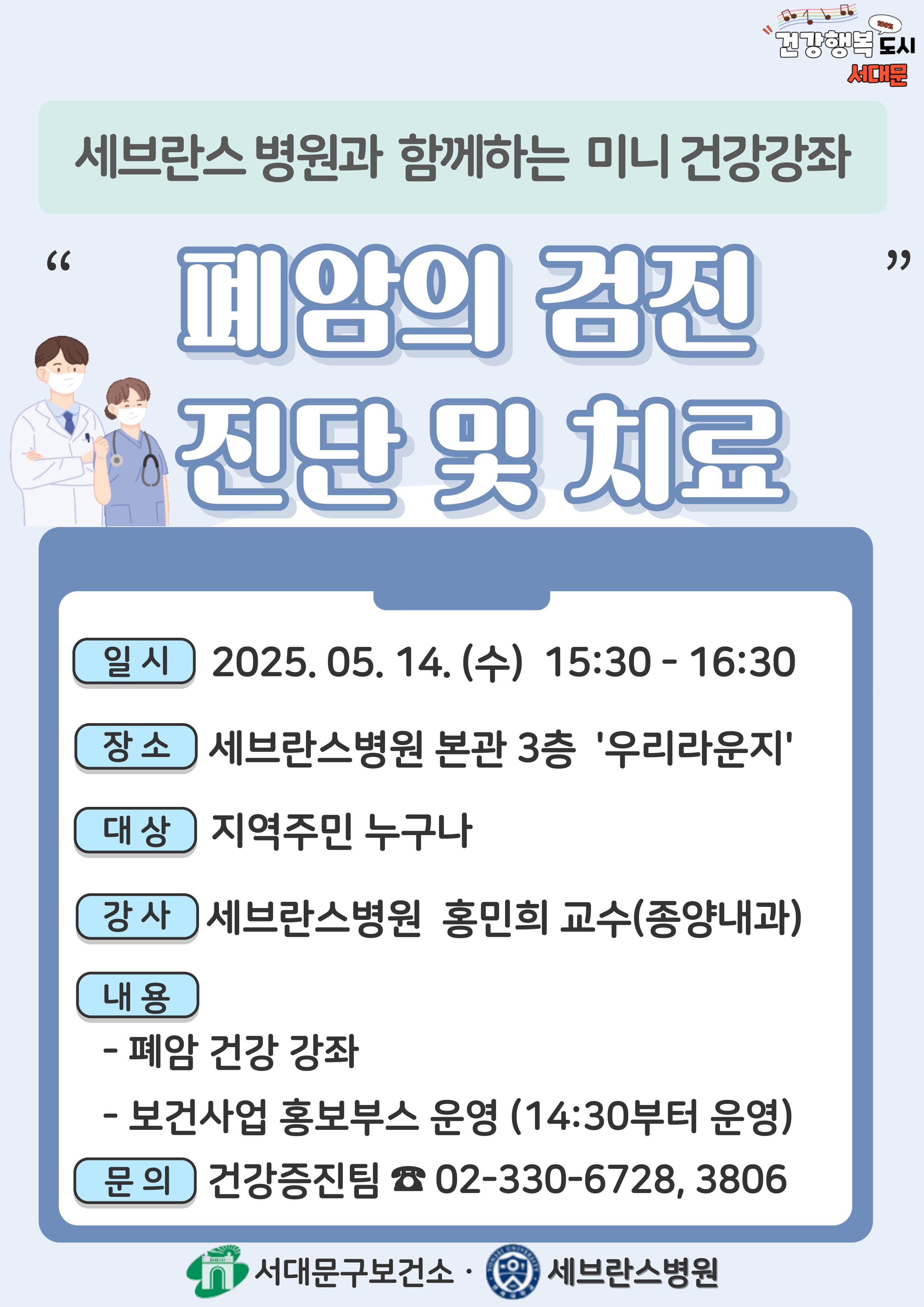 제목 세브란스병원과 함께하는 『폐암 예방관리』 미니 건강강좌 참여안내