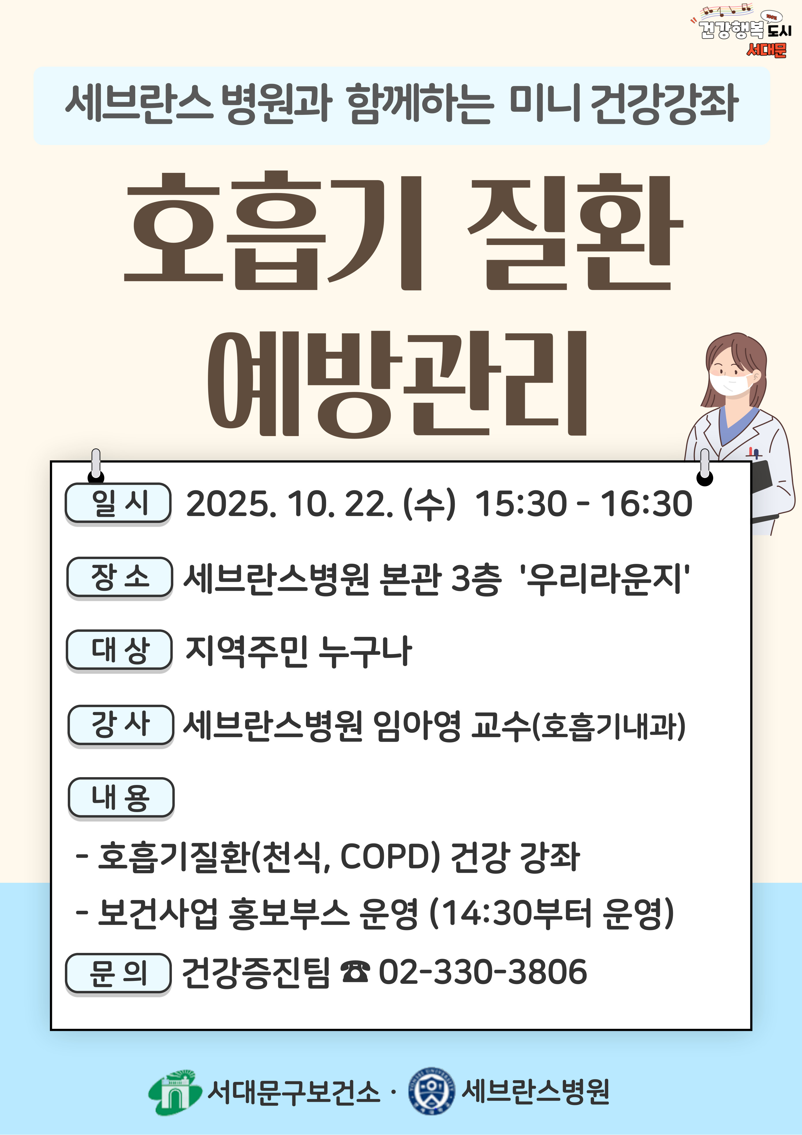 제목 세브란스병원과 함께하는 『호흡기질환 예방관리』 미니 건강강좌 참여안내