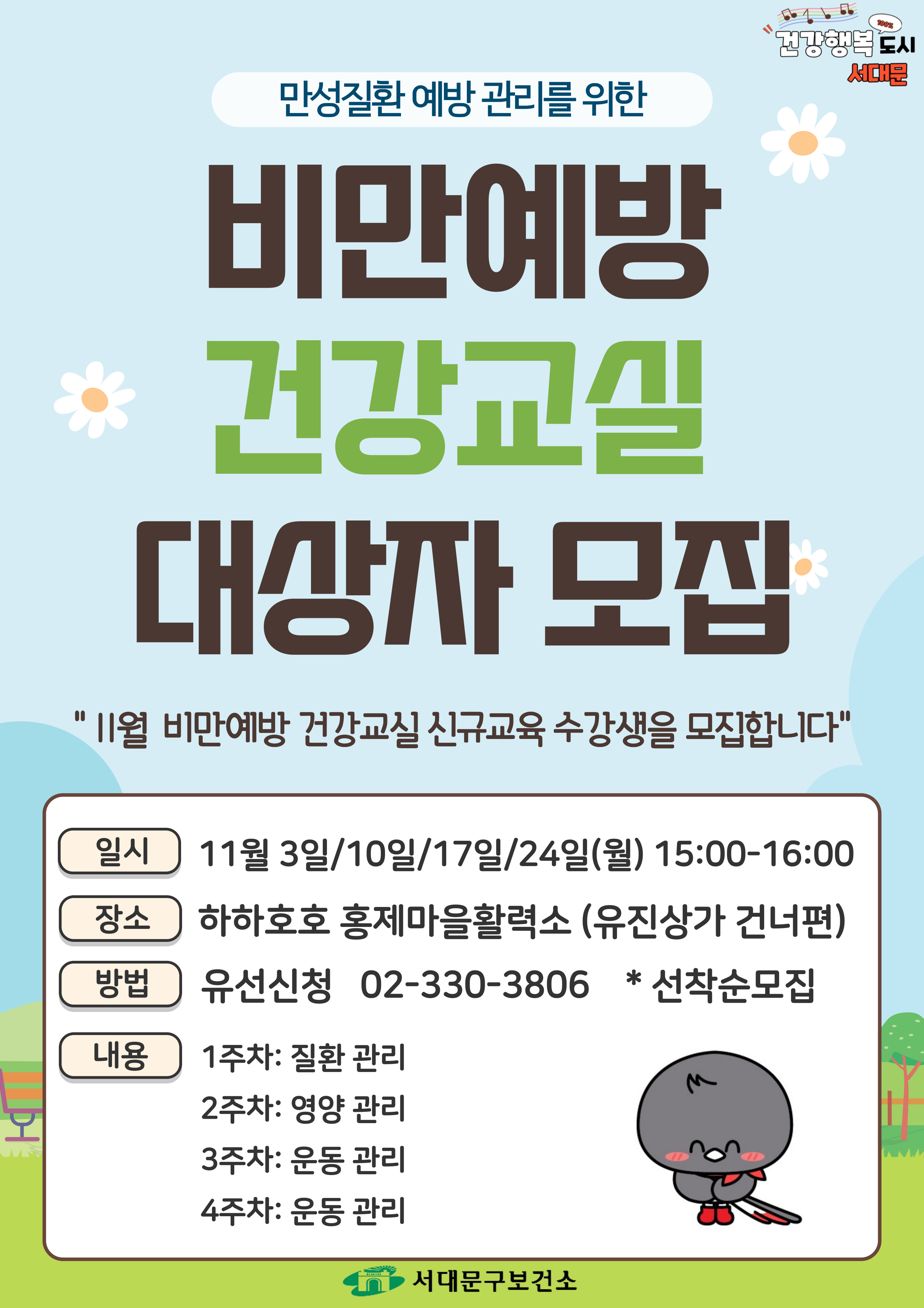 제목 2025년 11월 비만예방 건강교실 대상자 모집