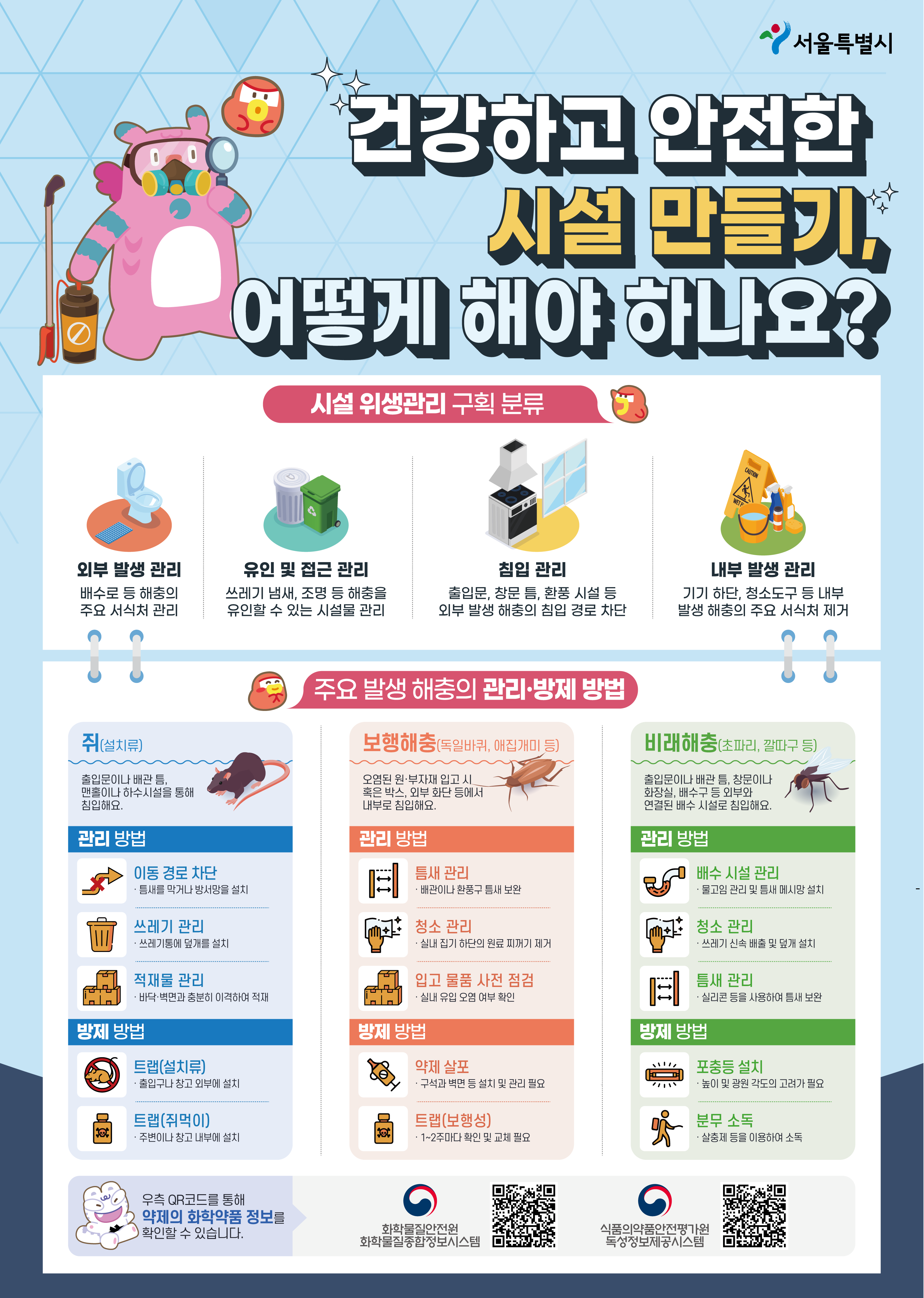 - 쓰레기 냄새, 조명 등 해충을 유인할 수 있는 시설물 관리