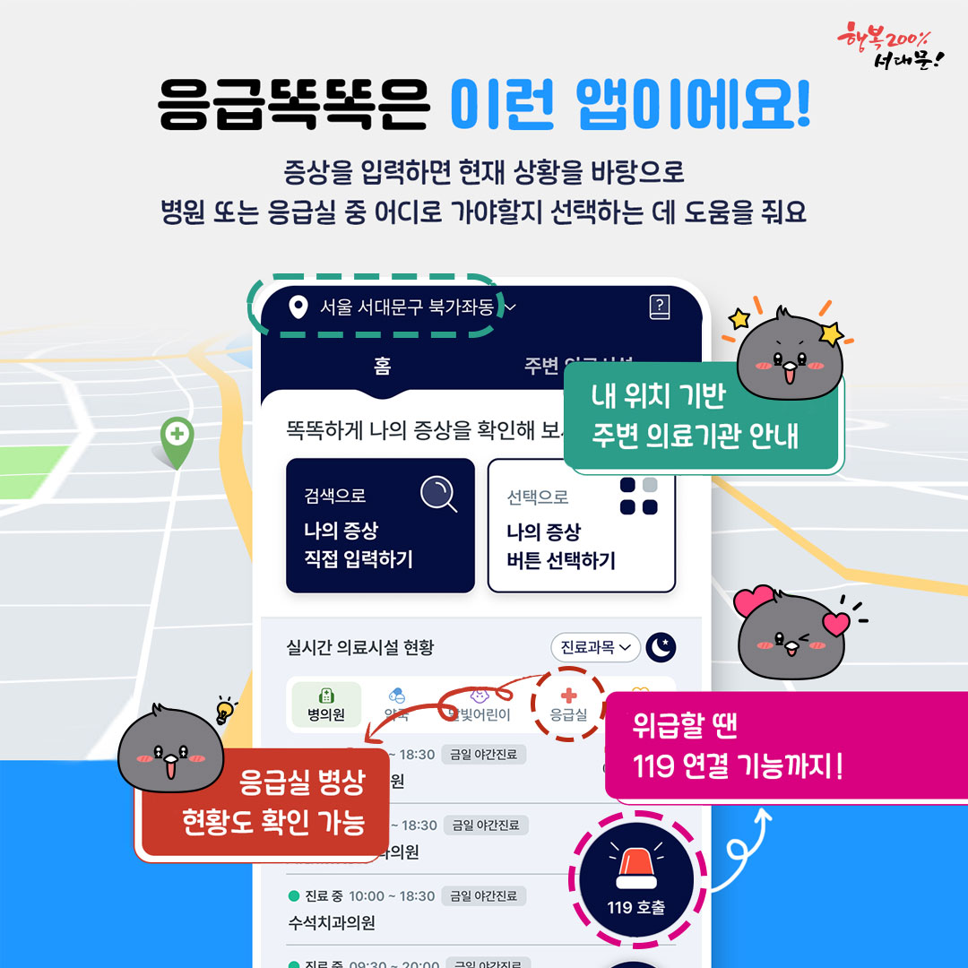 갑작스러운 상황에도 걱정하지 마시고, 필요할 땐 '응급똑똑' 등을 통해 가까운 의료기관을 쉽게 찾아보세요!