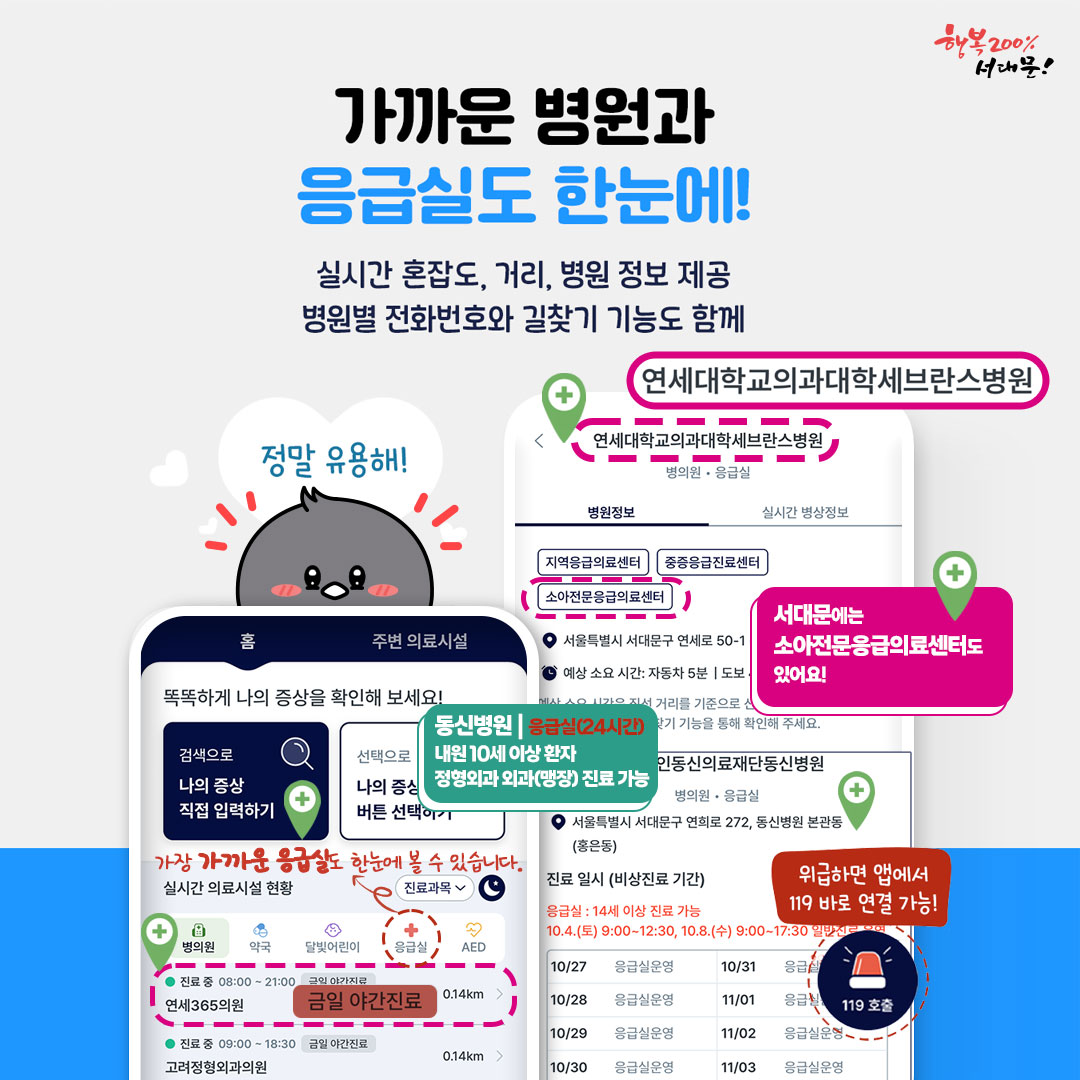 우리구는 아이들과 주민 여러분의 건강과 안전을 위해 소아전문응급의료센터(세브란스병원)를 포함한