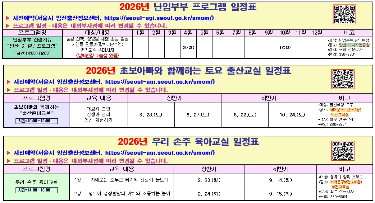 - 교육신청 : 온라인 신청(서울시 임신출산정보센터) → QR 코드-보건소 교육 신청