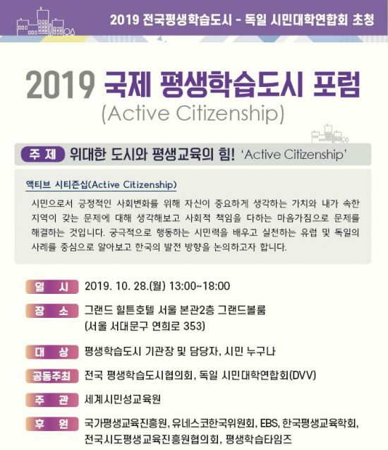 [¾Æ½Ã¾Æ°æÁ¦ ¹ÚÁ¾ÀÏ ±âÀÚ] Àü±¹Æò»ýÇнÀµµ½ÃÇùÀÇȸ(ȸÀå ¹®¼®Áø ¼´ë¹®±¸Ã»Àå)°¡ µ¶ÀϽùδëÇп¬ÇÕȸ¸¦ ÃÊû, 28ÀÏ ¿ÀÈÄ 1½ÃºÎÅÍ 6½Ã±îÁö È«Àºµ¿ ±×·£µåÈúưȣÅÚ ¼¿ï º»°ü 2Ãþ ±×·£µåº¼·ë¿¡¼ ‘2019 ±¹Á¦ Æò»ýÇнÀµµ½Ã Æ÷·³’À» °³ÃÖÇÑ´Ù.