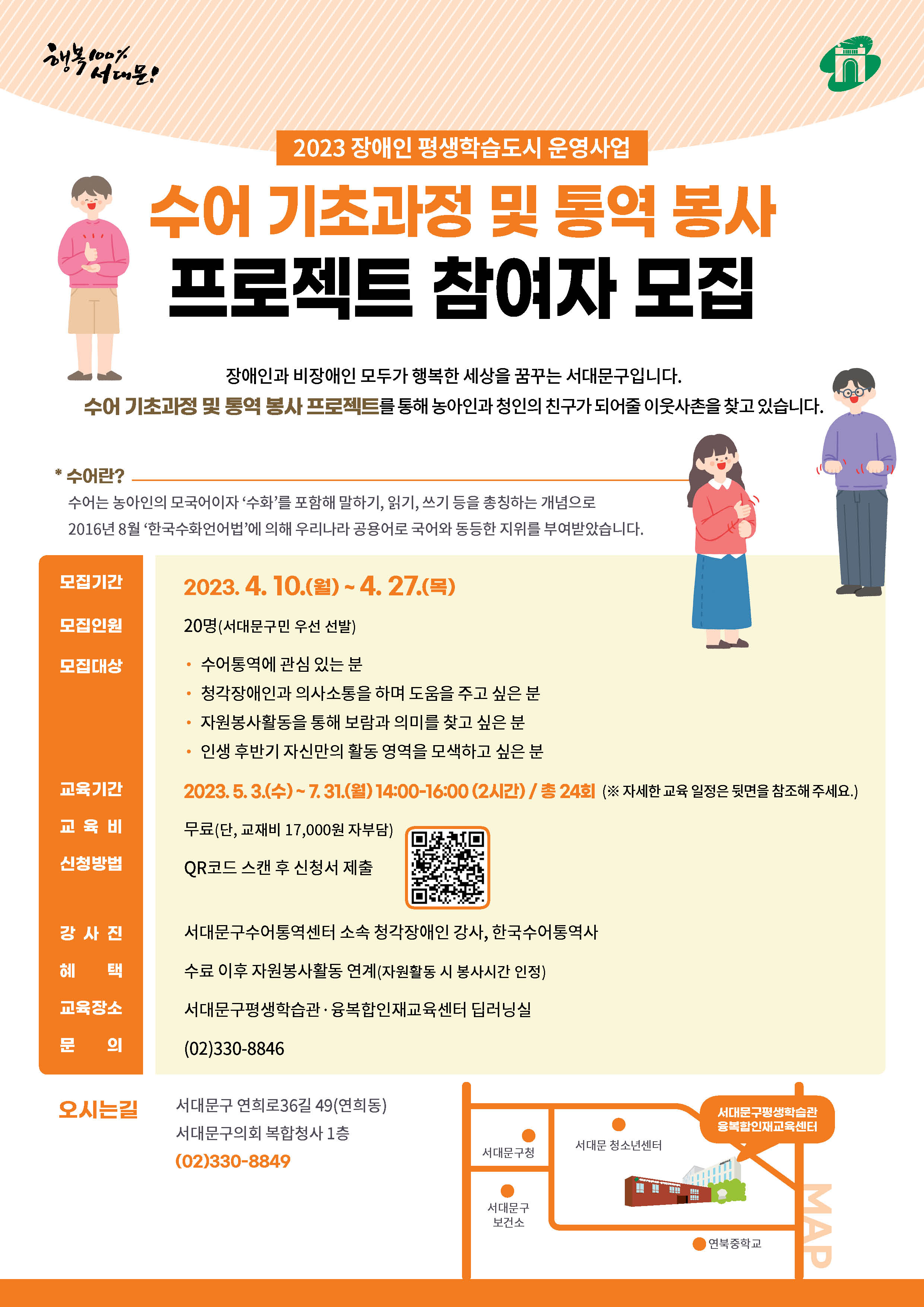 <¼ö¾î ±âÃʰúÁ¤ ¹× Å뿪ºÀ»ç ÇÁ·ÎÁ§Æ®> Âü¿©ÀÚ ¸ðÁý Á¶ÀºÁ¤ 2022 2023³â 04¿ù 11ÀÏ (È) ¿ÀÈÄ 10:07:58 ¼´ë¹®±¸Æò»ýÇнÀ°ü¡¤À¶º¹ÇÕÀÎÀç±³À°¼¾ÅÍ¿¡¼´Â 2023³â Àå¾ÖÀÎ Æò»ýÇнÀµµ½Ã ¿î¿µ»ç¾÷ÀÇ ÀÏȯÀ¸·Î<¼ö¾î ±âÃʰúÁ¤ ¹× Å뿪ºÀ»ç ÇÁ·ÎÁ§Æ®>¸¦ ÁøÇàÇÕ´Ï´Ù. ¾Æ·¡ÀÇ ¾È³»Áö¸¦ È®ÀÎÇϽðí³ó¾ÆÀΰú ûÀÎÀÇ Ä£±¸°¡ µÇ¾îÁÙ ÀÌ¿ôºÐµéÀÇ ¸¹Àº ½ÅûÀ» ¹Ù¶ø´Ï´Ù.