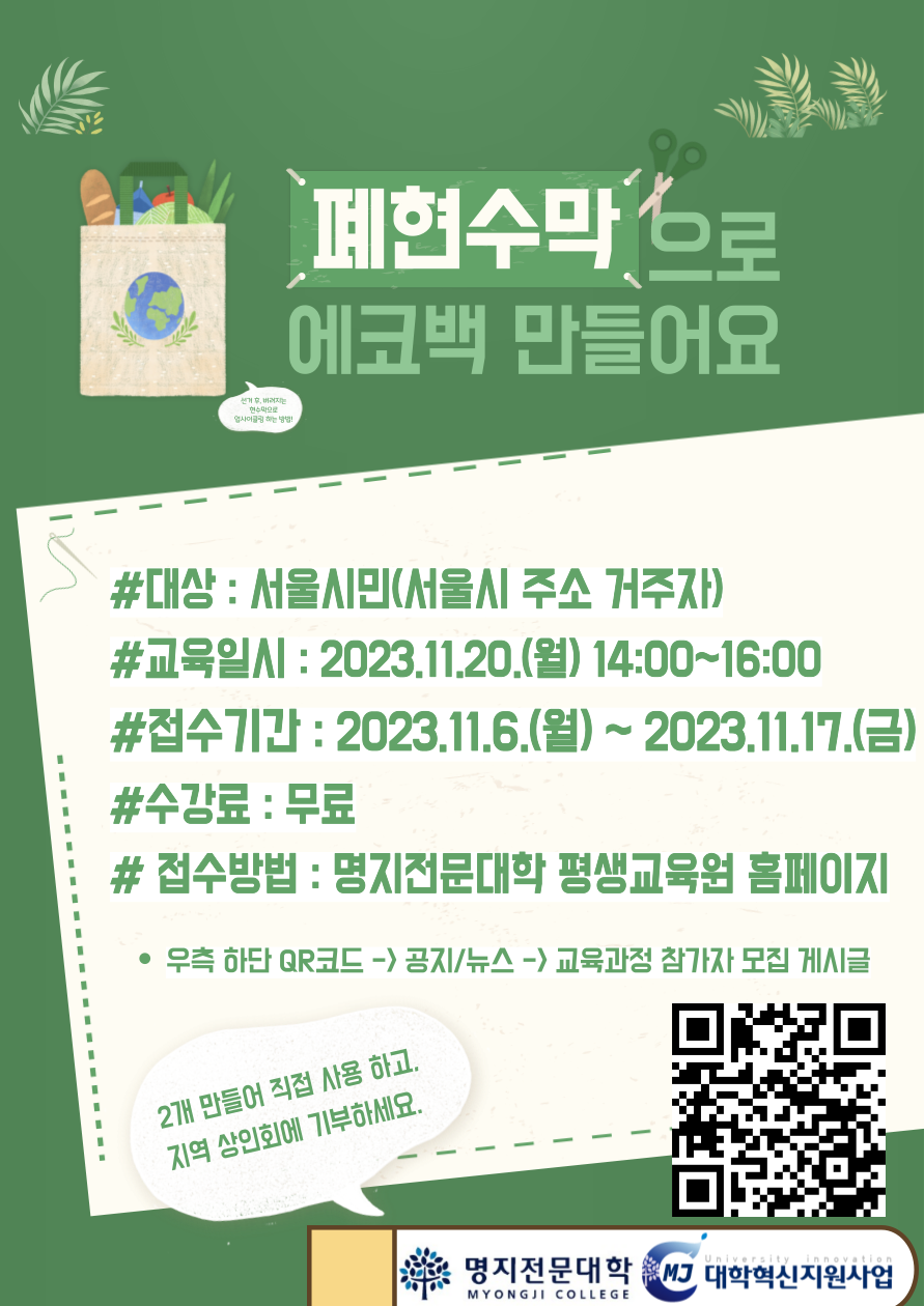 [¸íÁöÀü¹®´ëÇÐ] ÆóÇö¼ö¸·À» Ȱ¿ëÇÑ ¾÷»çÀÌŬ¸µ ÇÁ·Î±×·¥ Âü¿©ÀÚ ¸ðÁý Æò»ýÇнÀ¼¾ÅÍ 1407 2023³â 11¿ù 14ÀÏ (È) ¿ÀÈÄ 05:49:38