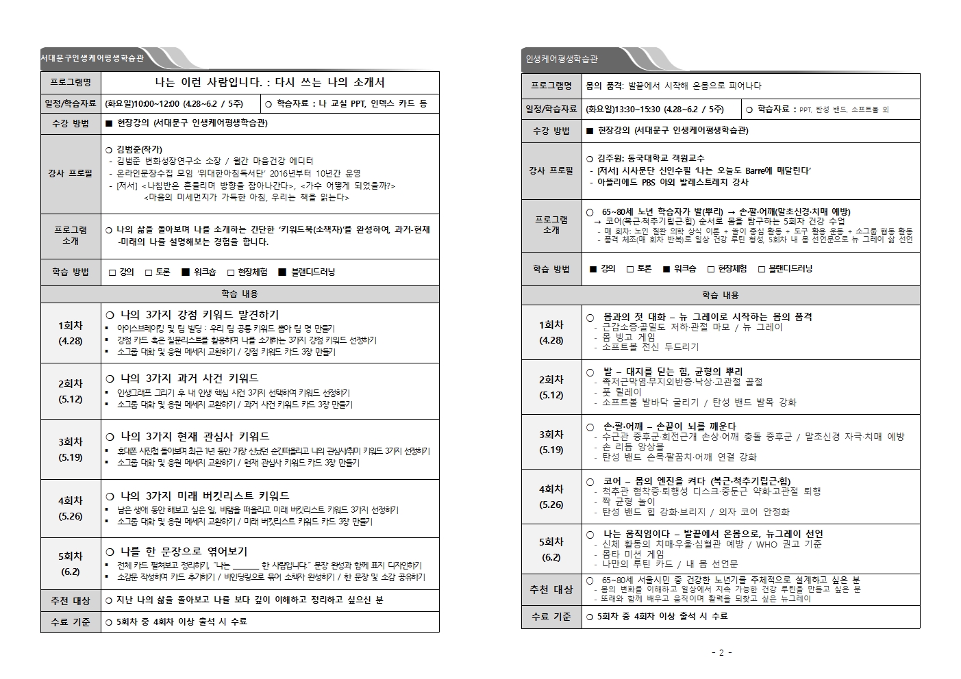 -2Çбâ 1Â÷: 9¿ù 8ÀÏ (È) ~ 5ÁÖÂ÷ (¿ÀÀü 10½Ã/ ¿ÀÈÄ 14½Ã)