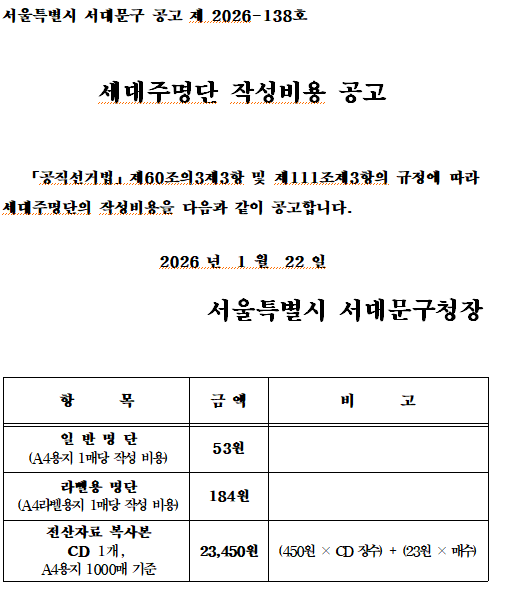 | Á¦¸ñ | 2026³â ¼¼´ëÁÖ ¸í´Ü ÀÛ¼ººñ¿ë °ø°í | ||