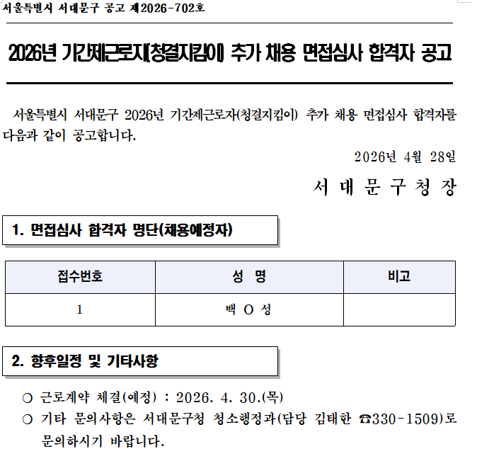 ¼´ë¹®±¸Ã»ÀÌ(°¡) âÀÛÇÑ `2026³â ±â°£Á¦±Ù·ÎÀÚ(û°áÁöÅ´ÀÌ) Ãß°¡ ä¿ë ¸éÁ¢½É»ç ÇÕ°ÝÀÚ °ø°í` ÀúÀÛ¹°Àº °ø°ø´©¸® "Á¦4À¯Çü:Ãâóǥ½Ã+»ó¾÷ÀûÀÌ¿ë±ÝÁö+º¯°æ±ÝÁö" Á¶°Ç¿¡ µû¶ó ÀÌ¿ëÇÒ ¼ö ÀÖ½À´Ï´Ù.